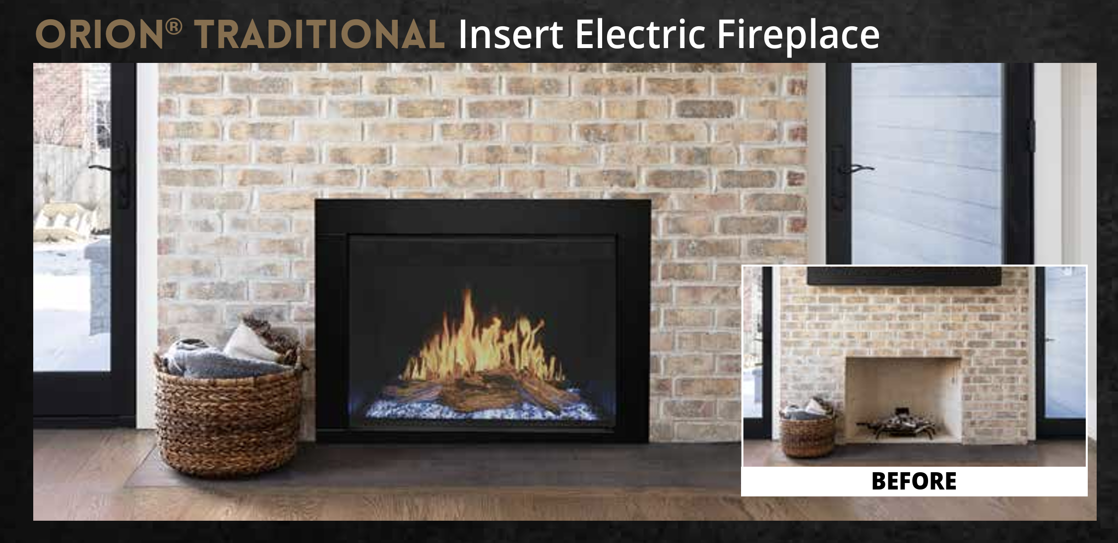 Update your old fireplace with this premium electric fireplace insert. With efficient heat and beautiful Heliovision® flames, it’s designed as an alternative to a wood-burning fireplace and provides a beautiful and affordable substitute.